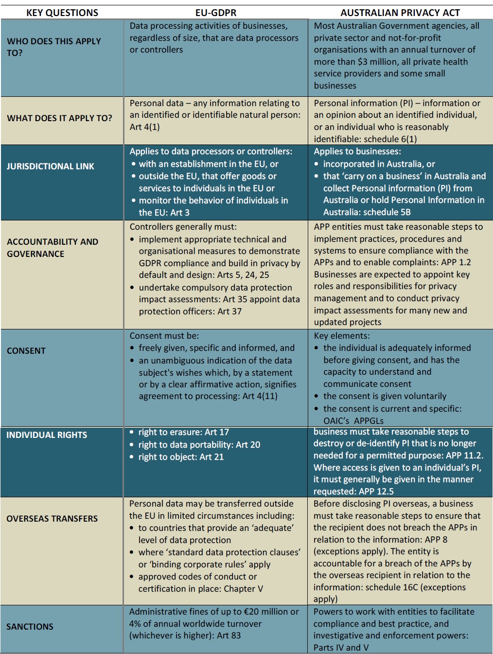 Comparing EU-GDPR with Australian Privacy Act